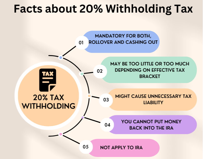 👉 MISTAKE #1: Not considering mandatory 20% withholding tax applied to both a rollover or cashing out.